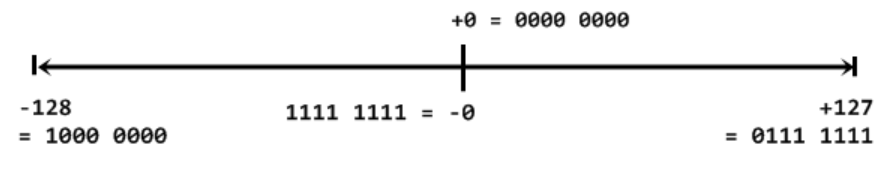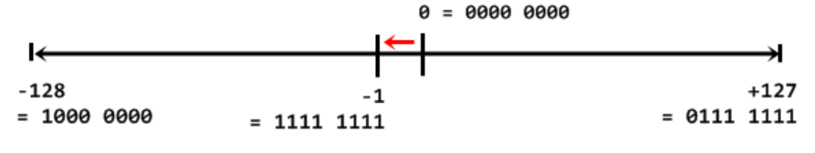 8 bit 구성으로 -128 에서 127 까지 표현 가능하다.