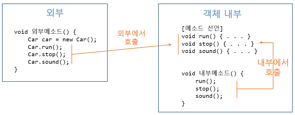 2. 클래스 외부에서 메소드 호출 (객체 외부)